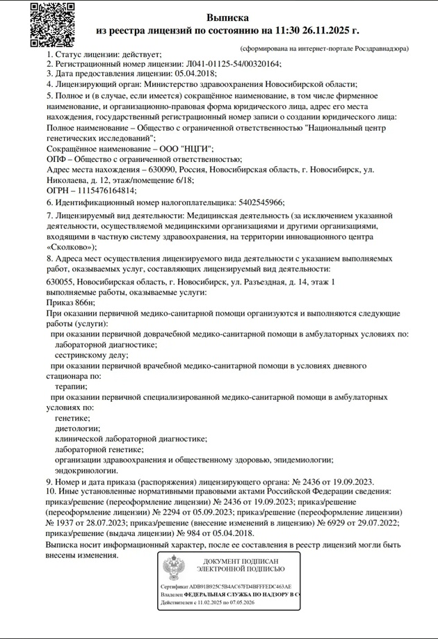 Точность ДНК-теста, который вы можете приобрести в нашем центре «ДТЛ» в Голицыно, крайне высока и достигает 99,99999%, благодаря использованию передовых методов анализа и диагностического оборудования в ДНК-лабораторий-партнёров.